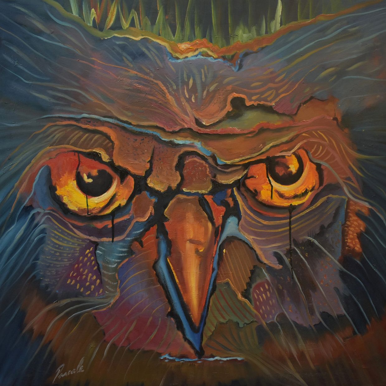 En mis obras, como en "Buho", siempre intento mostrar esa conexión que hay entre el espíritu y el universo. Me esfuerzo por usar los colores, las luces y las sombras, las formas, para acercarme a ese silencio que tiene el búho, que es igual al del cosmos: todo eso que no vemos pero que está presente, aquí y ahora.